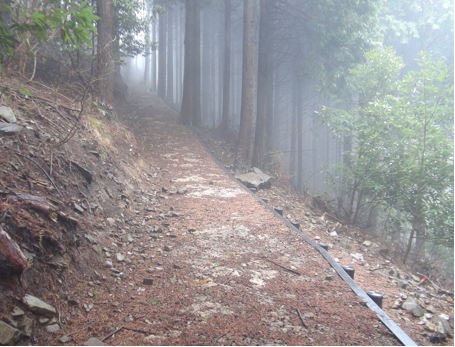 実は昨年、那岐山の登山道にて、雪の中、土の道の泥濘化や流失を防ぐために現地の土にジオベストを混ぜて整備をしました。ジオベストは、「道の保全」と「登山者の安全確保」のために、便利な土舗装固化材です。